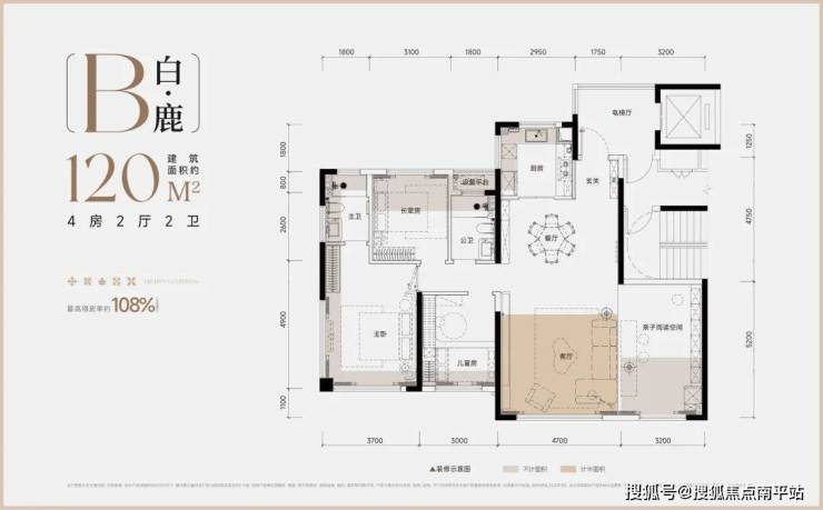 白鹿:120㎡四房两厅两卫全能配置,从容应对四口之家或三代同堂的居住需求;