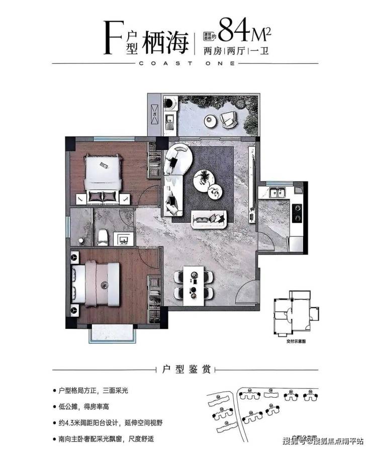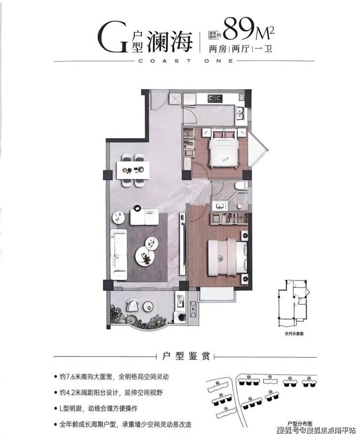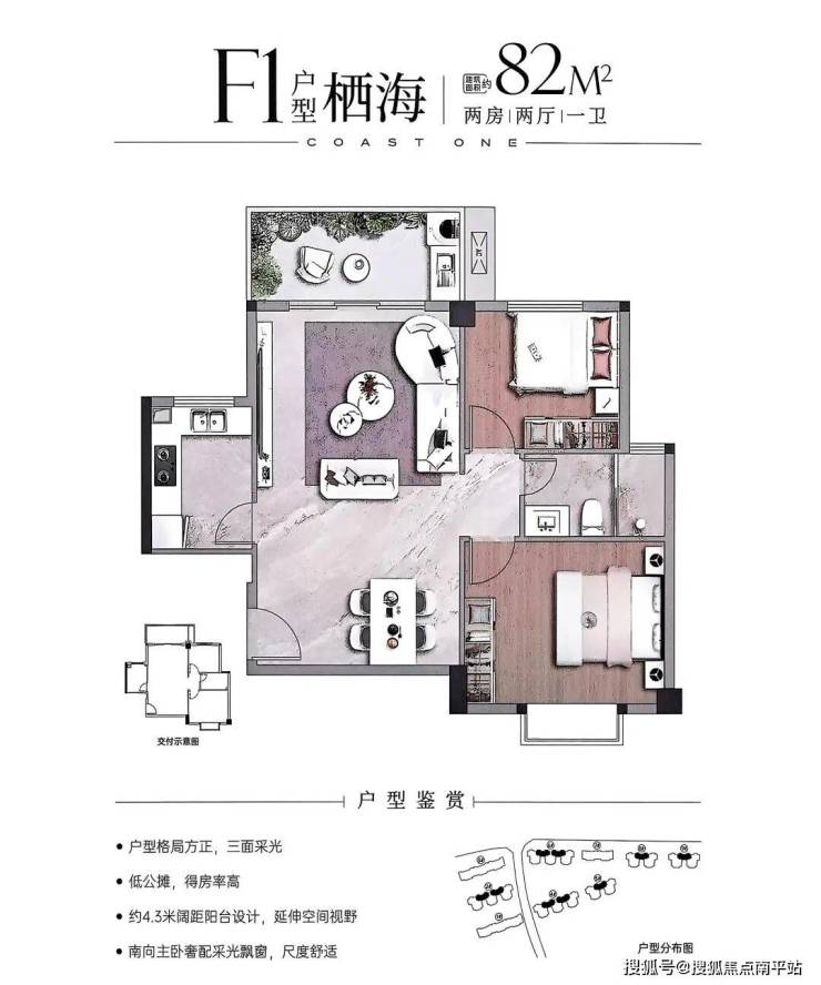 •82-88㎡两房紧凑实用,部分南北通透;