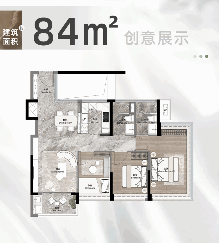 由于是单边位,预测套内会比84平的户型更大。这是因为,新规收紧后,高得房率的部分象征,也能继续保留。
