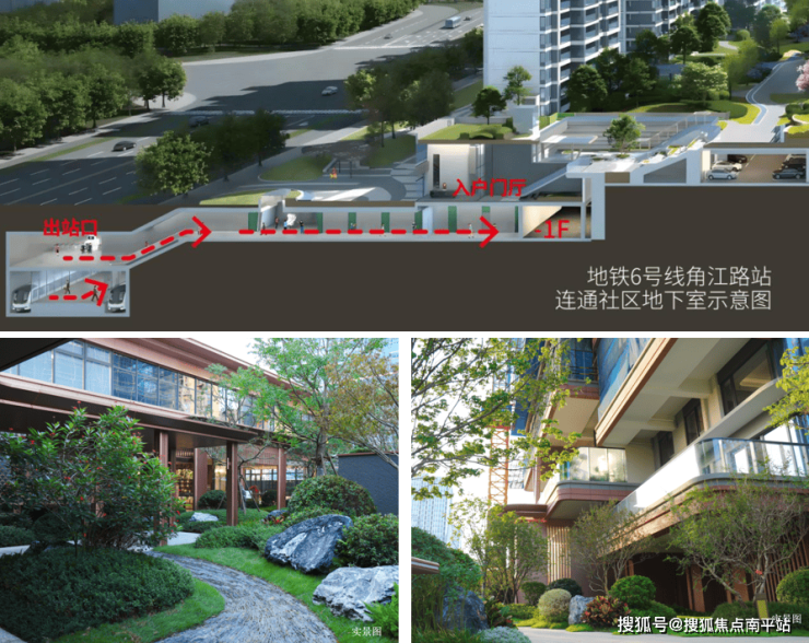 项目共规划有12栋高层,共计940户。社区从儿童乐园到长者健身区,从大草坪到社区会客厅,及多种休闲场地串联起互动空间。小区创新设计风雨连廊,串联中庭花园、多功能分区及入户架空层,地下室直连地铁6号线角江路站,无缝衔接从车库进地铁站,形成遮阳避雨的归家动线。社区内打造有多功能会所,规划健身会馆、品茗茶室及儿童空间,叠加空中共享露台与社区花园,打造温情社区空间。