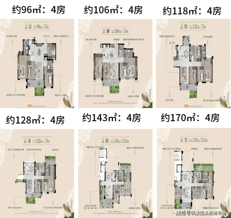 项目规划住宅产品1351套,涵盖96至170㎡四房,刚需改善兼顾,户型布局合理,南北通透,客餐厅阳台一体化,整体户型都以大面宽、多功能为导向,全维度保证居住舒适度。