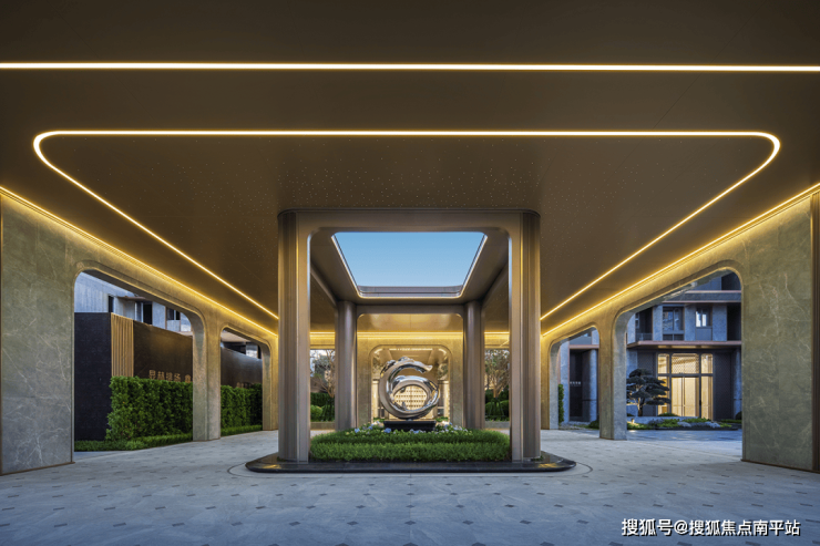 项目外围退让约35米红线,在外部呈现约2.3万㎡园林景观,这才是豪宅应有的领地感。继续深入,约58米奢阔酒店式入口呈映眼前,幻影星空顶+天琴系主题雕塑水景迎宾+酒店式环岛落客区,给足归家礼序与迎宾排面。