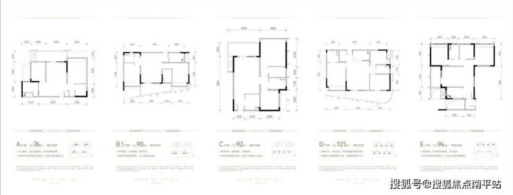 76㎡两房一卫、92㎡两房两卫、94㎡三房一卫