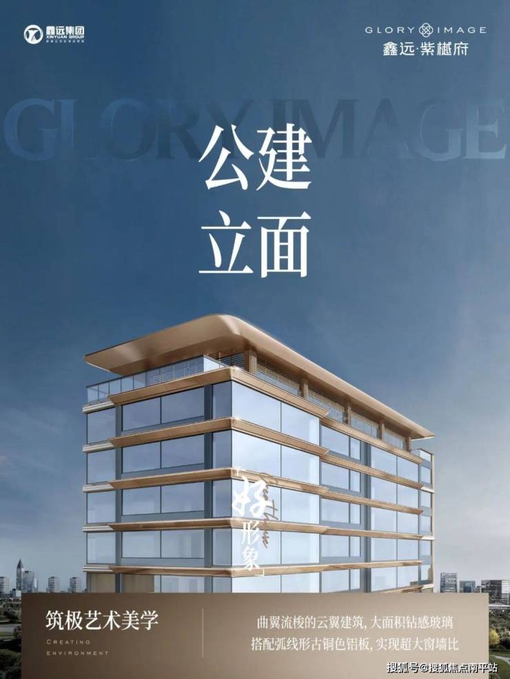 【云翼建筑】以大幅钻感玻璃,搭配弧线形古铜色铝板