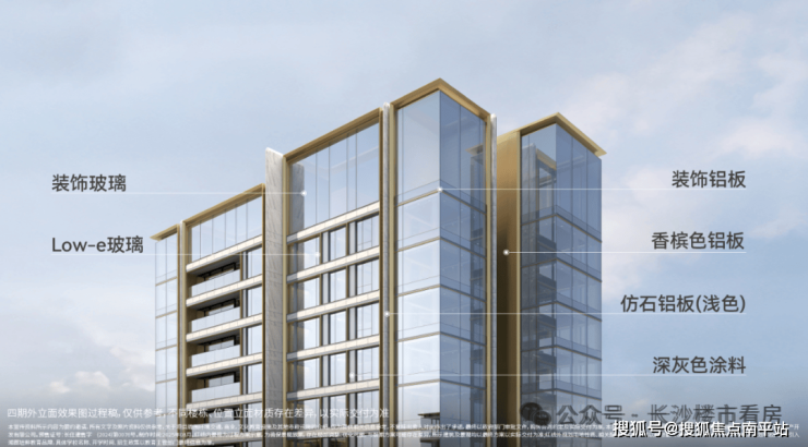 外立面:采用“玻璃幕墙+金属线条”设计,搭配香槟金铝板,呈现国际范的现代美学;