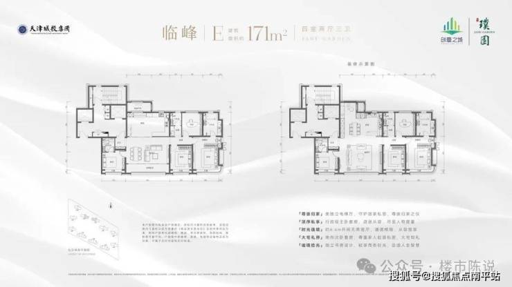 首先呢就是释放了四款户型,122平米的三室两厅两卫、134平米的三室两厅三卫、139平米的三室两厅三卫和171平米,也就是整个项目最大的四室两厅三卫!