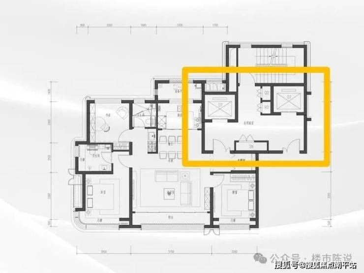 这几款户型呢,都做了这种类独立电梯厅的设计,两部电梯分开排布,各自对着一户的入户门。但也有个问题啊,如果两部电梯是混用的话,那反而会影响私密性了,不知道后期这两部电梯怎么控制,能否达到这种一梯一户的私密性的要求。