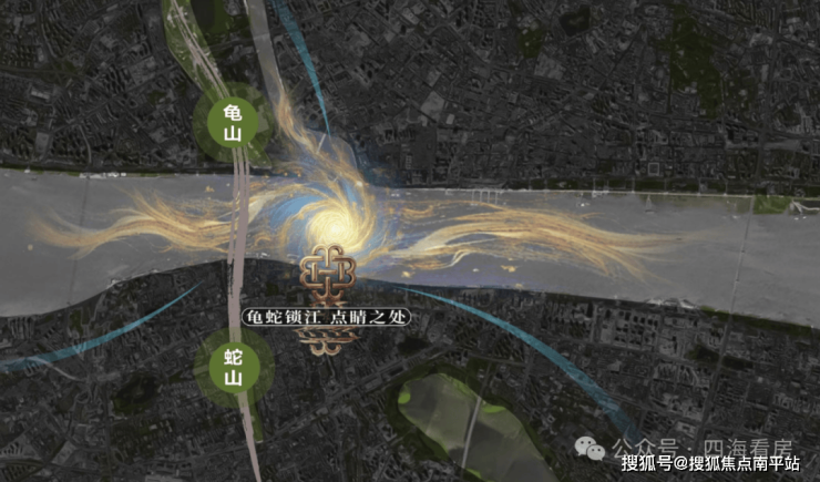 项目踞守蛇山脚下,与龟山隔江对望,扼守“龟蛇锁大江”的点睛之处。位处两江四岸汉水回旋之要冲,成就藏风纳气之所;拥揽长江岸边山环水抱、玉带环腰之势,乃自然天成的兴旺之地厚泽之壤。