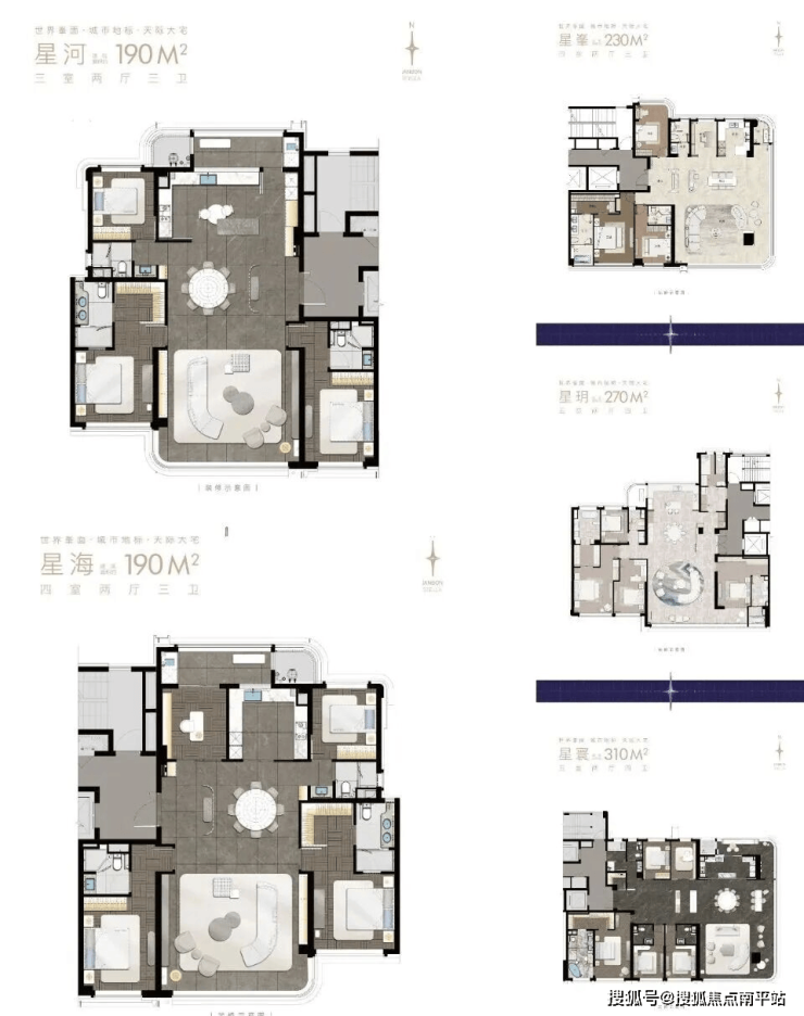 【面积】:建面约190㎡/230㎡/270㎡/310㎡ 阳台赠送10~25左右