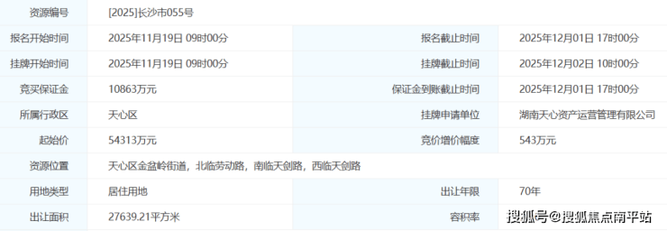 地块要求竞买人须具备近现代历史风貌建筑保护性开发与活化利用项目开发经验;落实19号栋、20号栋、八角亭移址重建的相关要求;住宅阳台统一封闭设计;住宅(毛坯)销售均价按长沙市政策进行价格监制等。