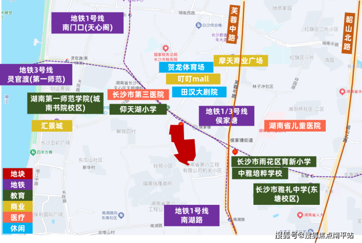 湖南省儿童医院和长沙市三医院距离地块均只有五六百米