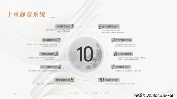 招商·江山玺通过还原每一个生活细节场景,通过设计“十重静音系统”,隔绝从外到内的一切噪音声源,为业主悉心打造全维静谧的生活居境。