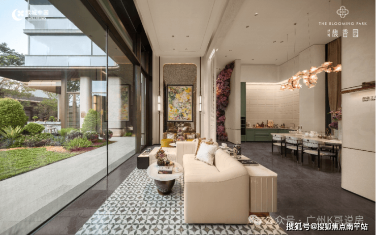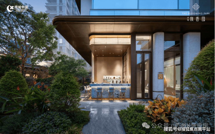 下沉式观瀑亭、露天社交会客厅,水院、园林及各种鲜花交织,仿若置身伊甸花园谧境。