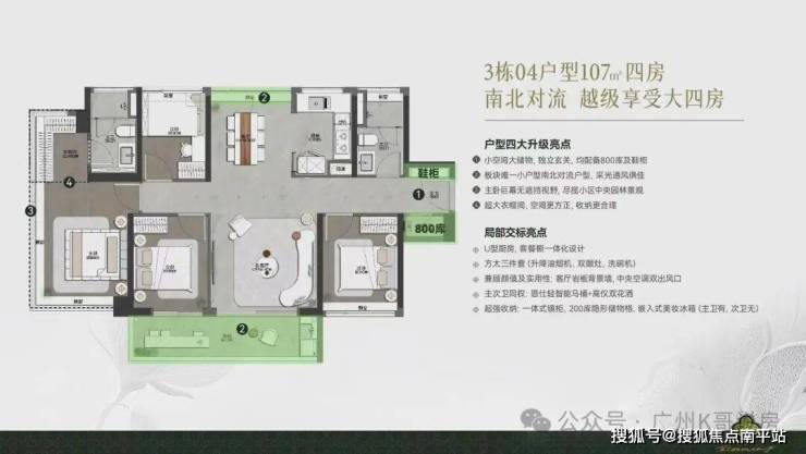 同样是南北对流的四房户型,做到了4.5开间朝南。