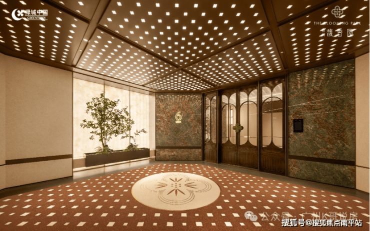 这次实景进一步打开全维庭院臻赏。花瓣圆柱造型、范思哲黑石立柱、铂金钻奢石底座,尊贵门庭仪序昭示,与馥香门庭呼应,打造古代大宅府邸的后花园。