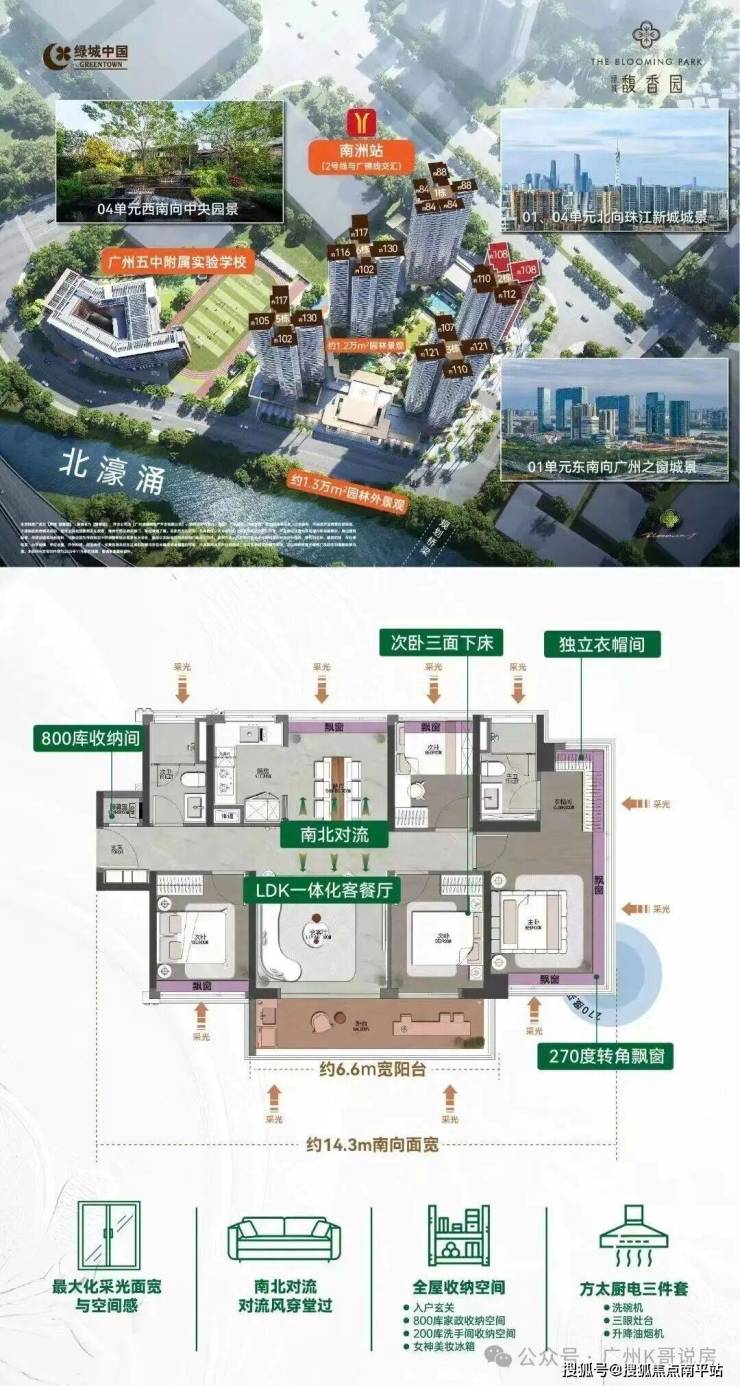 项目位处广佛线/2号线南洲站,双地铁上盖,你可以3站到客村,5站到珠江新城,7站到琶洲,8站通行万博/金融城/白鹅潭商圈。