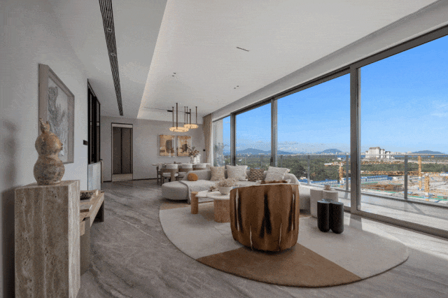 三大优势叠加,再加上3.1米的层高,置身其间,犹如进入劳斯莱斯座舱一样,尽览湾区风光和自然景色。