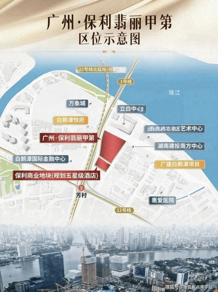 地块地处白鹅潭商务区核心区,三江交汇处,周边商业、交通、人文、教育、医疗配套一应俱全