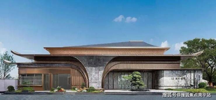 一进超45米宽、约13.5米高的巍峨门府——岛外最高、最大、最气派的大门,以7款高端金属材质、6款高端石材、1款高端岩板组合造境,引进古代王公之藻井,高价值罗汉松。