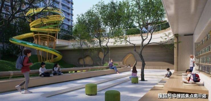 采用架空设计,抬高约5.3米,部分楼座还设有下沉庭院。