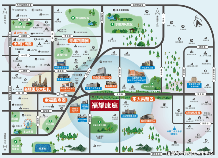 老城区发展高位——东大梁片区,政务中心、新联天茂市场、天山区人民医院三重加持,区域发展未来可期;