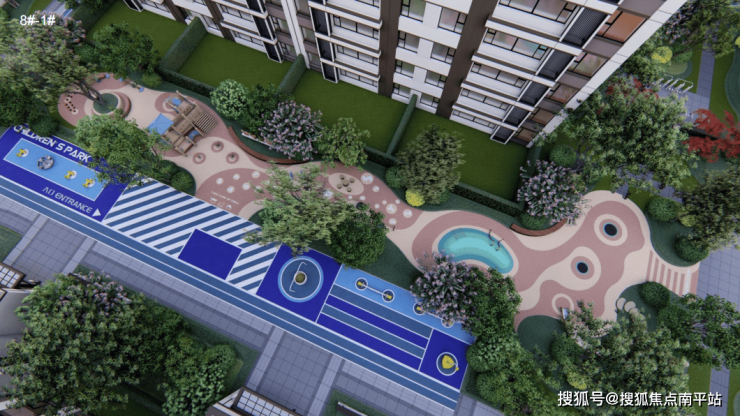 分0-3岁、4-6岁、7-14岁三个区域,地面采用无毒EPDM塑胶。设计基于全年龄段活动时间曲线,高峰期为上午7-9点和下午17-21点(夏季)。