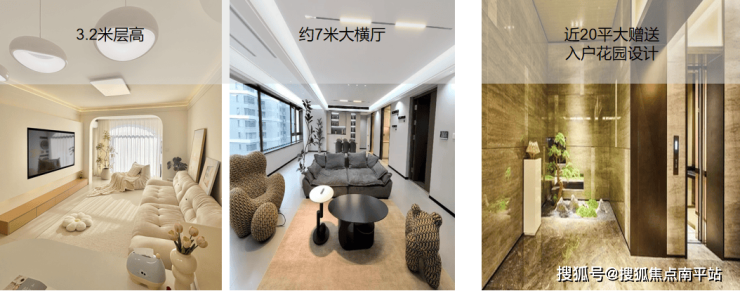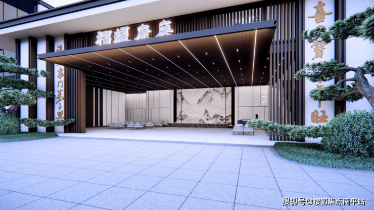 60米入口轴线,打造气势恢宏的小区大门。设计下沉式庭院,配水景墙和假山(寓意“遇水升财”),并设置扶手电梯和步梯(象征“步步高升”)。大门精装采用白色大理石和褐色金属,增强归家仪式感。