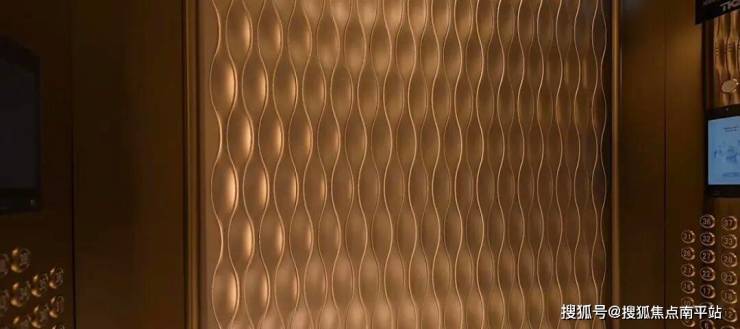 电梯是家的情绪衔接段,设计上既是鎏金曲线,又是江的波澜。
