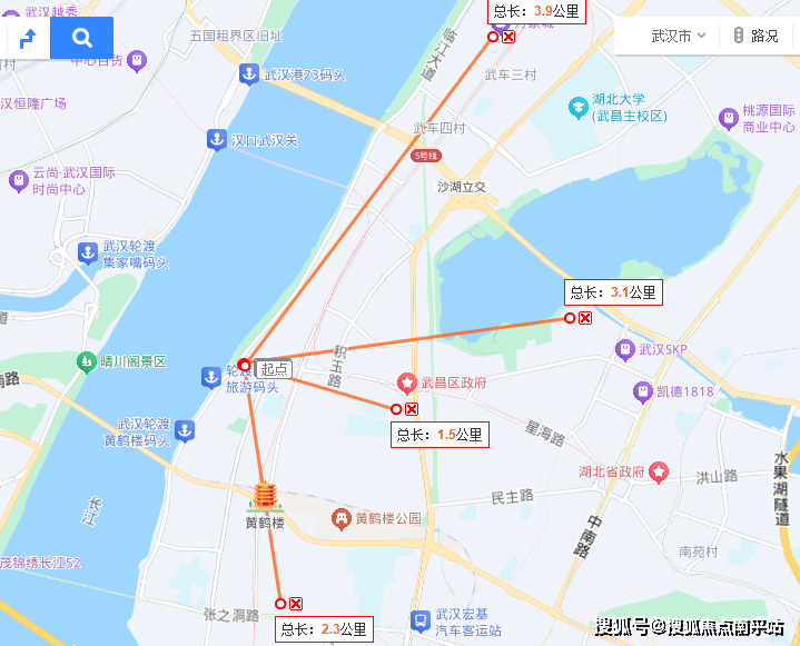 另外,西侧一路之隔就是武昌江滩和长江,到黄鹤楼、辛亥革命博物馆等人文景点距离也比较近,江对面则是晴川阁等景区。