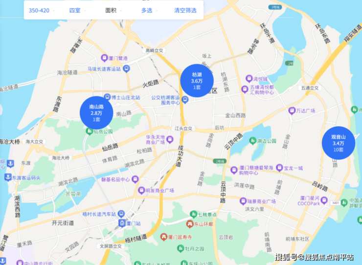 岛内虽好,但房价贵呀,420万岛内二手难觅15年内楼龄的电梯4房。整个岛内二手就三个盘,一个是观音山的尚峰国际可选,品质一般,学区一般,一个是枋湖的金枋世家,安置房,还有一个是老湖里的泰裕新城二期,人车不分流,你就说选房难不难吧?
