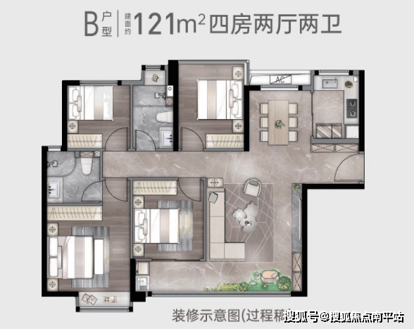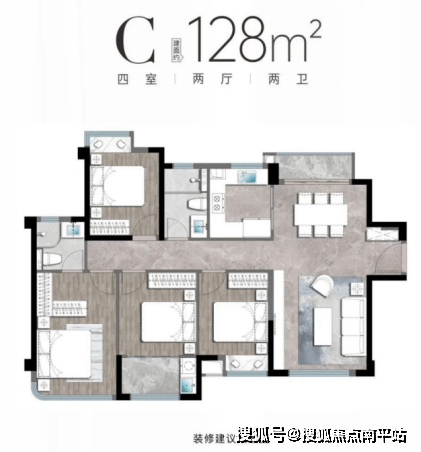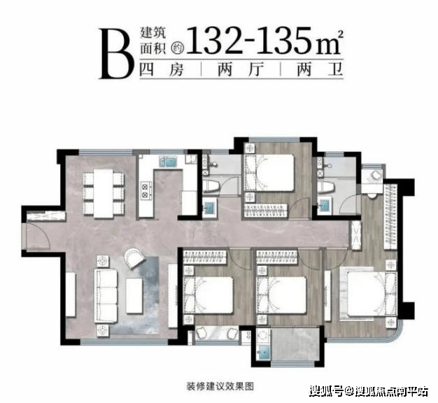 户型方面,114平户型五开间朝南,做4房;134平四房户型,约13.7米南向开间,客餐厅30多平。