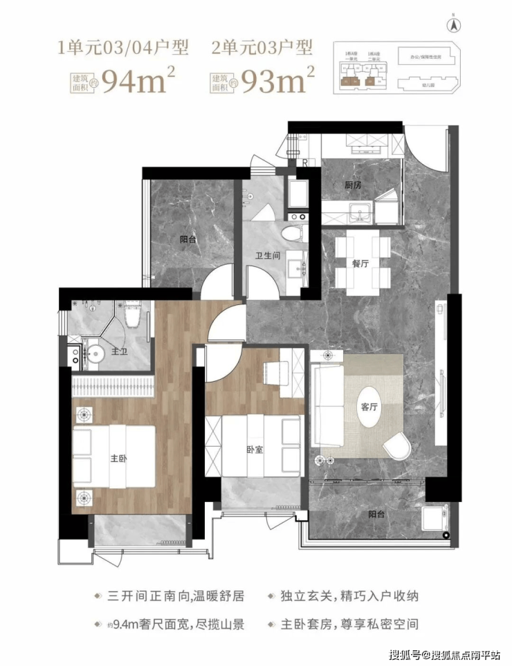 3️⃣93㎡3房2卫折后448-484万