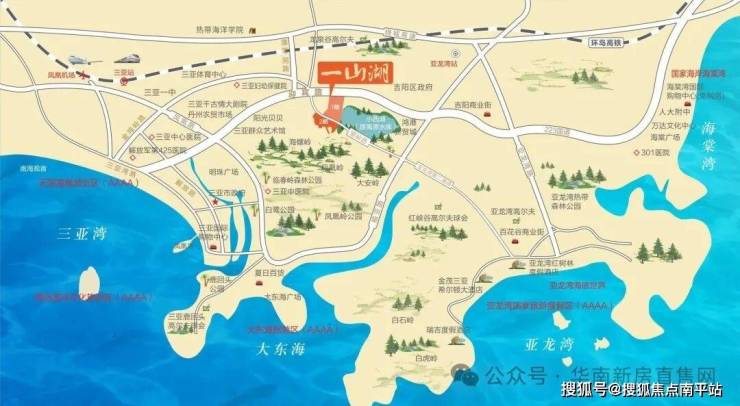 海螺岭、凤凰岭、大安岭、白石岭、白虎岭、三亚湾、大东海、亚龙湾、海棠湾