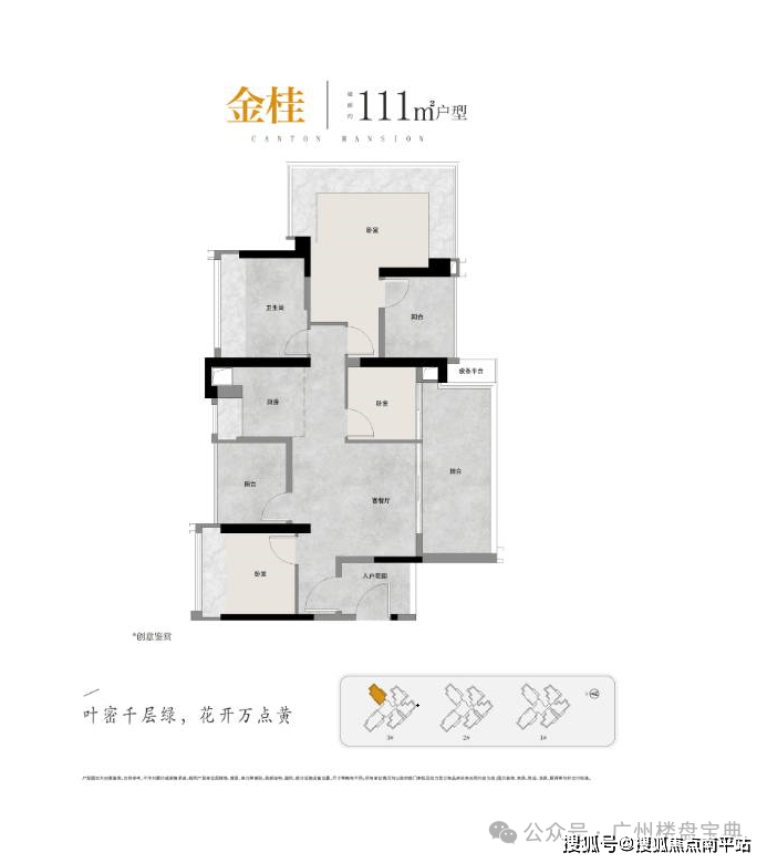 越秀桂悦东晓的体量不大,仅做了三栋住宅,主推88-105-117平三个面积段。
