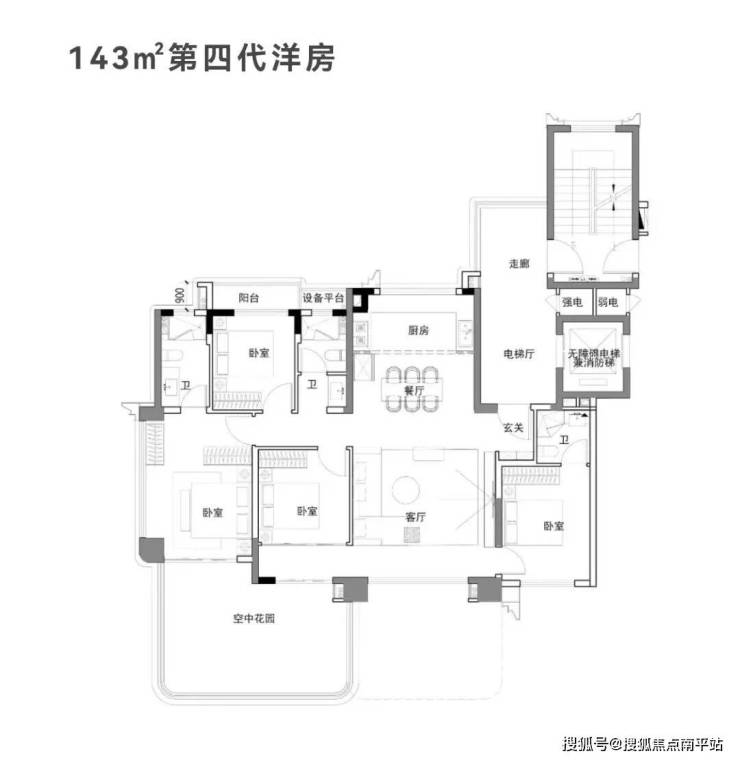 143平以上都是2梯2户,四代住宅,送露台