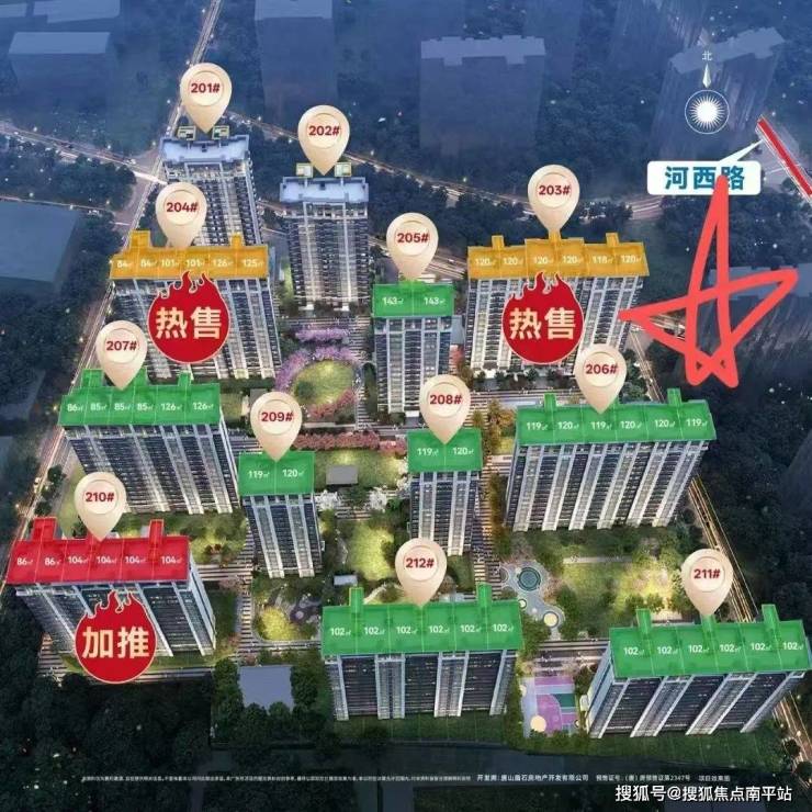 5 月 31 日,206# 楼 2 单元加推了,房价 10000 元 /㎡起,均价 10600 元 /㎡,还开放了 120㎡的实体样板间。这 206 号楼是 18 层一梯两户,位置显眼,挨着河西路,出门去哪都方便。从小区规划图上看,楼和其他楼栋隔得远,隐私性好,而且楼间距宽,屋里从早到晚都亮堂,推开窗就是小区里的绿化景观。