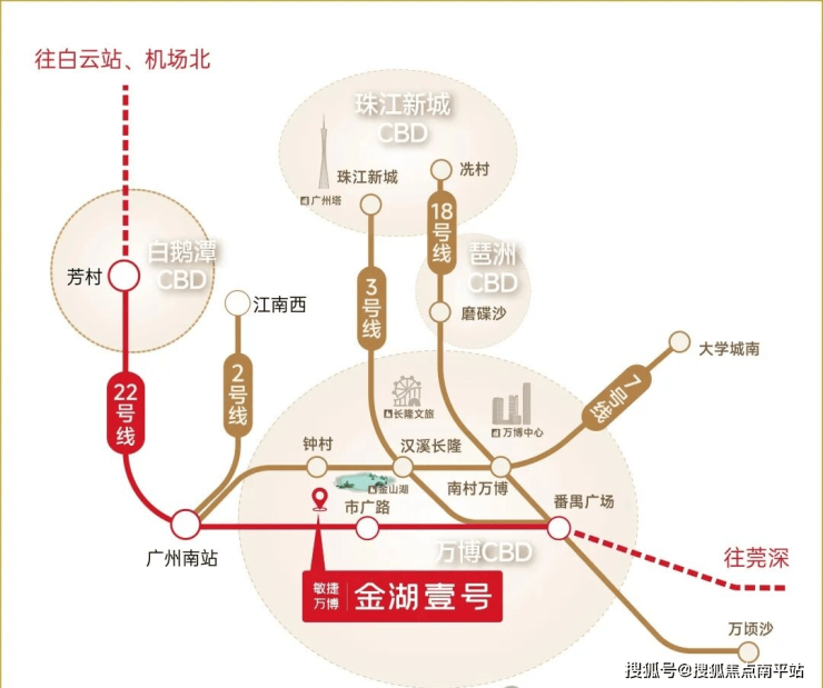 ◎【双地铁交汇】22号线(已开通)及26号线(规划中)双地铁交汇,约800米市广路地铁站, 1站番禺广场、2站万博中心,3站琶洲CBD、4站珠江新城。