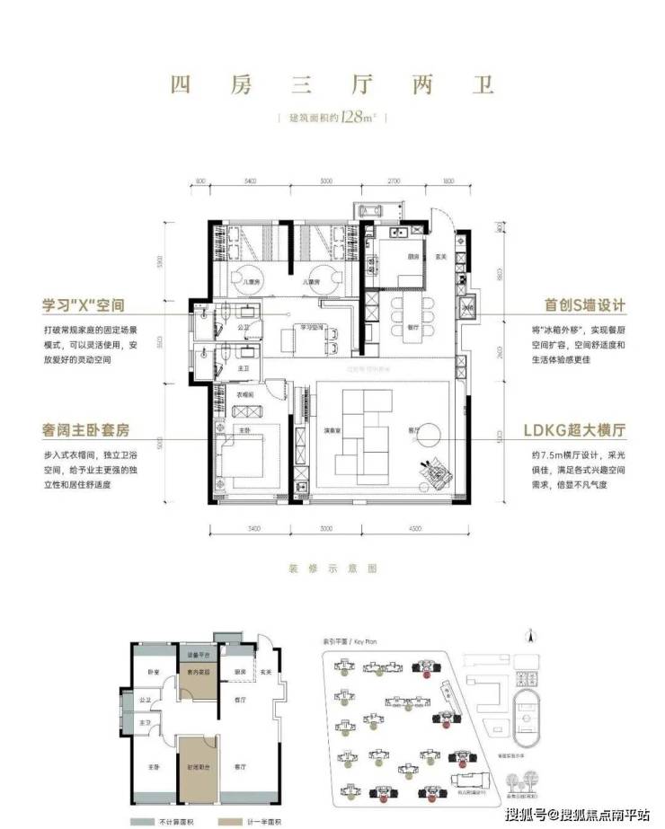 128㎡四房实得面积 129㎡,首创学习 X 空间,可做书房、玩具房,满足全家庭个性化需求;