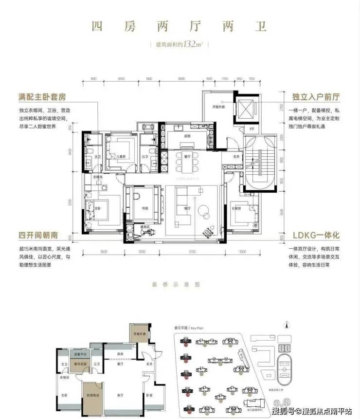 132㎡四房一梯一户,独立入户前厅,超 15 米四开间朝南,满配主卧套房带步入式衣帽间,改善体验直接拉满。