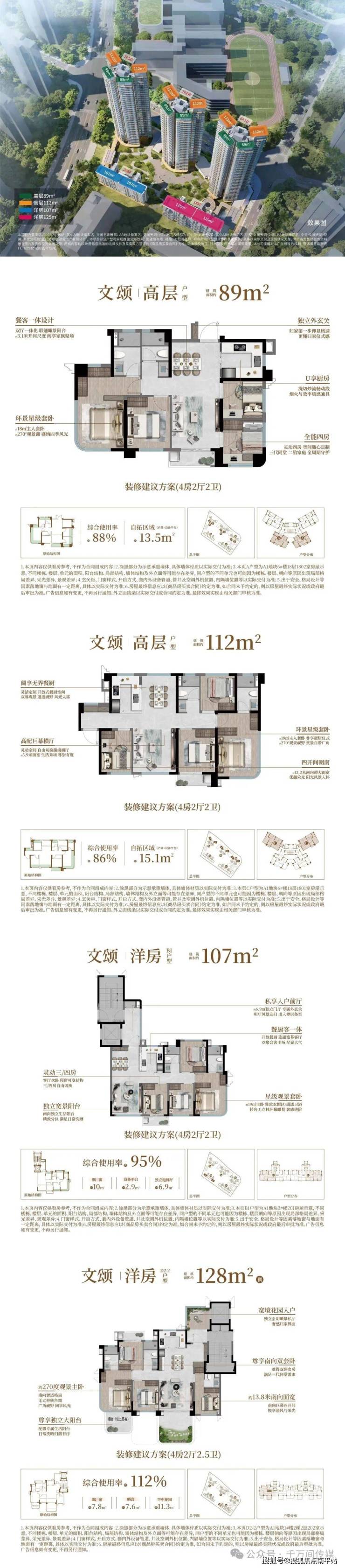 中交文澜天玥,项目前身为J2025P01地块,楼面价约1.62万/㎡。项目分 两个地块打造 ,户型跨度较大,从89㎡的高层到205㎡的叠拼,能满足刚需到改善的不同需求,而且综合使用率约88-112%,细节设计也比较贴合日常居住。