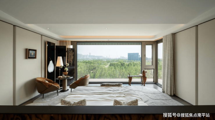 上叠约87平米星空露台+超大阳台,是对湖景资源的极致占有,不仅可俯瞰紫琅湖碧波,露台BBQ区、水吧、卡座,将生活场景延伸至云端,室内大面积的落地玻璃则让湖光山色毫无阻隔地涌入室内。