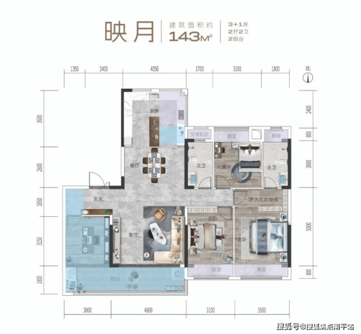 灵巧设备平台(不计面积)与封闭阳台组合设计,进一步提升空间利用率;