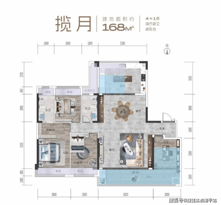 阳台(面积计半)面积达到约23㎡,可以做茶室、健身房、花房,生活品质大大提升;