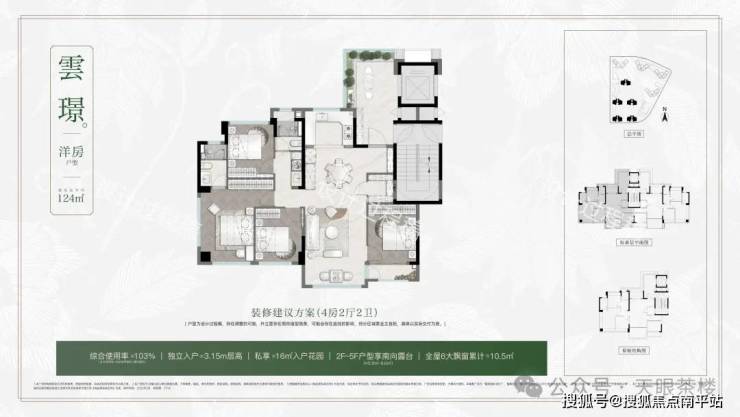 ④约124㎡洋房:3.15米层高突破常规住宅限制,对应"三才"(天、地、人)之道。