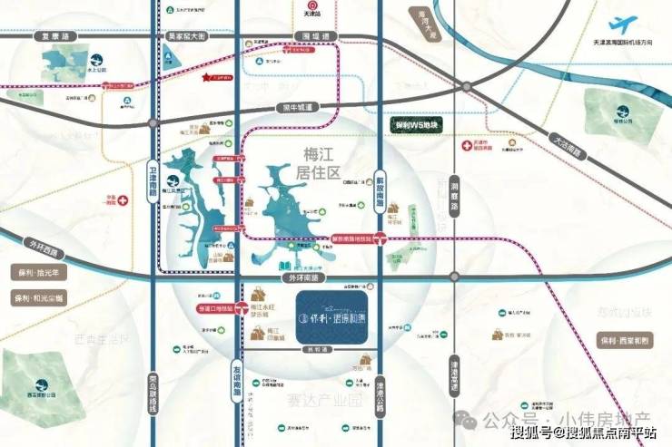 项目坐落于外环南路与解放南路交叉口西北角,占据梅江南核心区位,与河西仅一河之隔。这里不仅是天津“一轴两带”发展战略的关键节点, 更因2025年上合峰会落址梅江会展中心,迎来城市界面的全面升级。