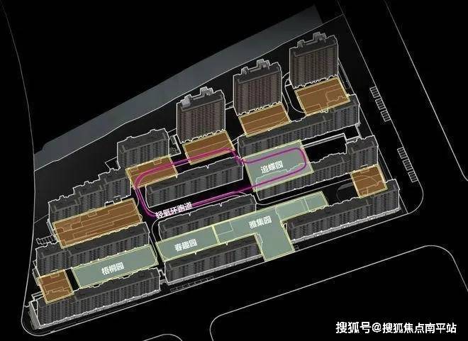 北侧4栋住宅一层架空做成业主公共活动空间,面积足足有 约1400㎡,在下沉庭院侧面的架空平台下方,也会有一个约 130㎡的公共活动空间。若再加上图书馆主题的归家大堂,那么,这些面向业主的公共活动空间面积就能达到约 1800㎡