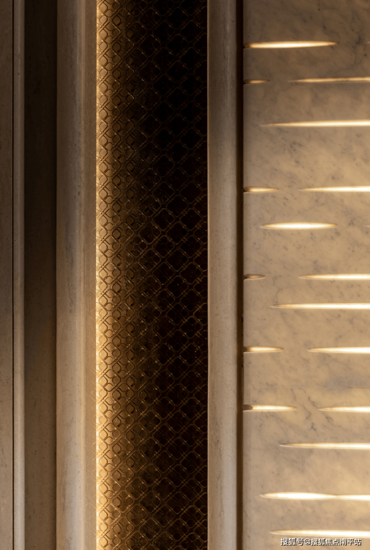 背景墙以湘江之水为灵感原点,通过解构水的物质形态与精神意象,在多元场景中演绎水的情绪谱系,流动的、静谧的、澎湃的,每一种状态都是对空间本质的诠释以及对城市动态的捕捉。