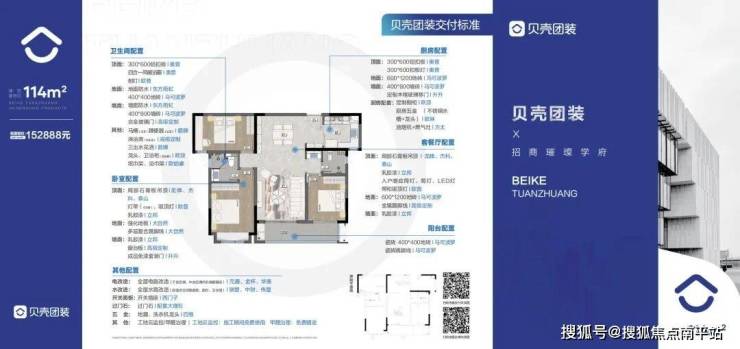 户型鉴赏‼️(贝壳品质精装— 省时、省力、省心、省钱)🔥团装1️⃣1️⃣4️⃣平 贝壳团装总价152888元