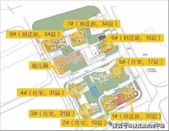 总栋数:共8栋塔楼(1#、6#、7#、8#为安置住房),3栋商业,1所幼儿园