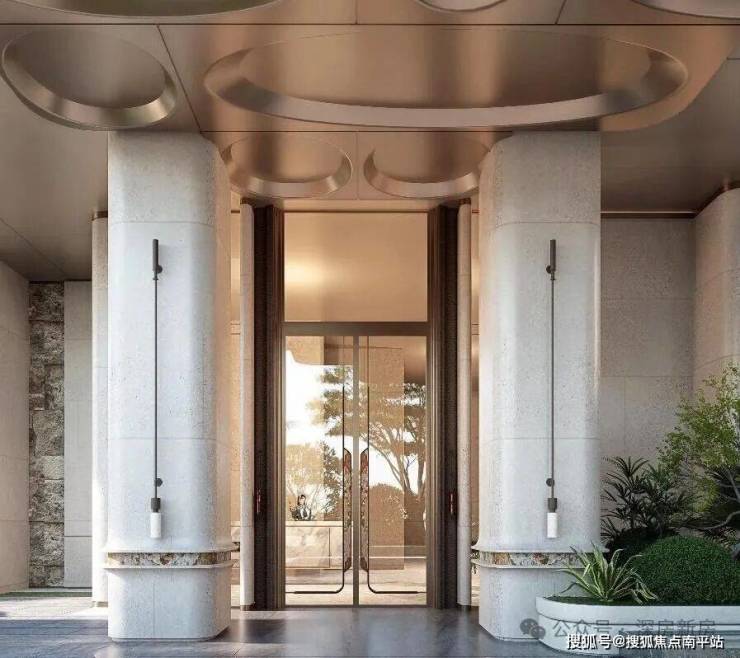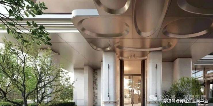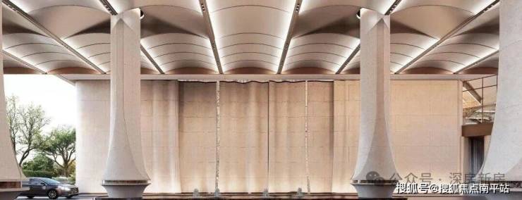 「后海招商玺」车行大门做了殿堂级落客区,设有天幕和水景,非常具备归家仪式感。